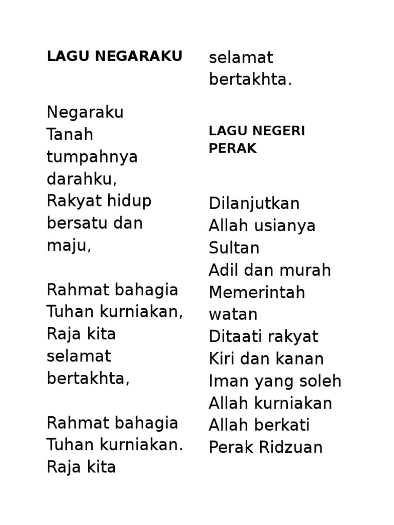 Aku Negaraku Mp3 from demo.dokumen.tips Selain download lagu aku negaraku di atas, anda juga boleh menonton video lagu aku negaraku beserta lirik di youtube pada pautan di bawah memandangkan surat arahan menyanyikan lagu aku negaraku sudah dikeluarkan maka menjadi kewajiban untuk setiap sekolah melaksanakannya. Coba kau lihat dirimu dahulu sebelum kau nilai kurangnya diriku apa salahnya hargai diriku sebelum kau nilai siapa diriku sebelum kau nilai… siapa diriku. Negaraku 2020 national anthem malaysia minus one. Now we recommend you to download first result aku negaraku lirik with chords mp3. Before downloading you can preview any song by mouse over. Download mp3 aku negaraku choi dan video mp4 gratis. Aku negaraku aku negaraku sememangnya negaraku maju negaraku tanah tumpah darahku. Ulang chorus x 1 aku negaraku.