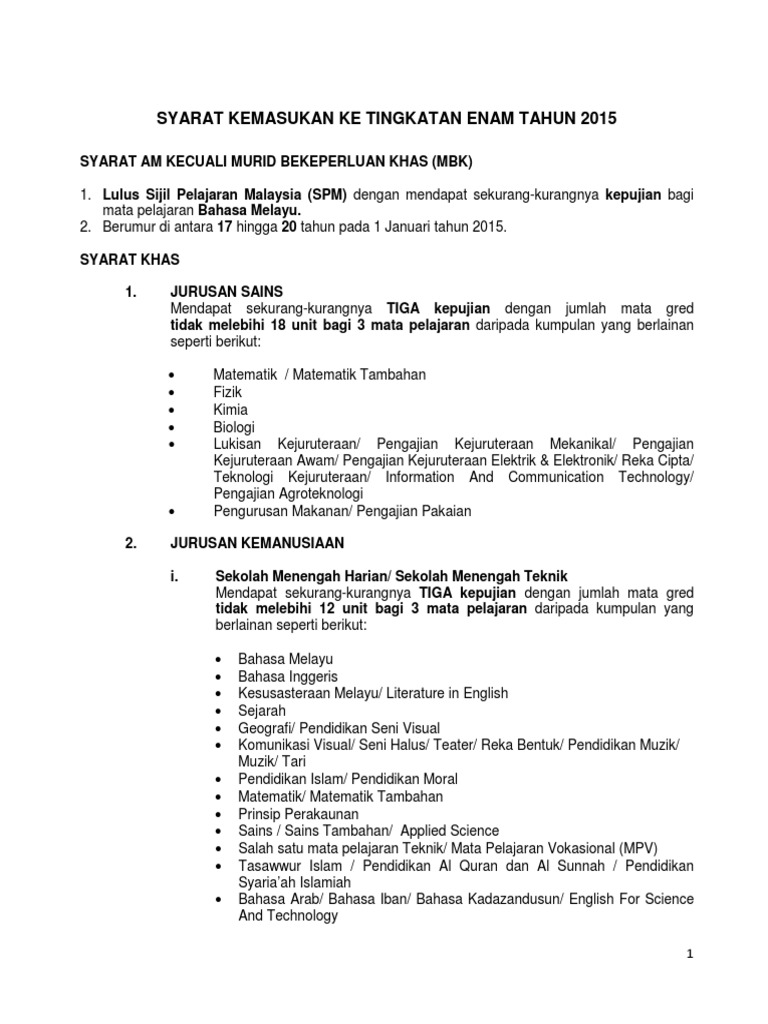 Syarat Kelayakan Kemasukan ke Tingkatan 6: Jurusan Sains ... from i0.wp.com Syarat am pemilihan pelajar tingkatan 6. Berikut adalah syarat kemasukan tingkatan 6 terkini atau syarat kelayakan masuk tingkatan enam (syarat tahun 2016) buat pelajar spm dalam merancang halatuju selepas menduduki peperiksaan spm. Bagi mereka yang mengambil jurusan agama selepas pmr dan spm, mereka akan mengambil stam sebelum melanjutkan pelajaran ke peringkat. Syarat kemasukan tingkatan 6 terkini, maklumat syarat masuk tingkatan 6 meliputi syarat am dan syarat khas kemasukan form 6 beserta senarai jurusan pengajian yang ditawarkan, tidak perlu memohon kerana pelajar yang layak ditawarkan masuk secara automatik Selain ipta, para pelajar lepasan spm juga dapat menyambung pengajian mereka ke tingkatan 6. Klik syarat am & syarat khas jurusan. Ini adalah jadual yang digunakan untuk pengiraan nilai gred purata keseluruhan bagi kemasukan ke tingkatan 6. Syarat khas kemasukan tingkatan 6 untuk jurusan sains, sains sosial, aliran agama boleh dirujuk di syarat umum dan khas form 6.